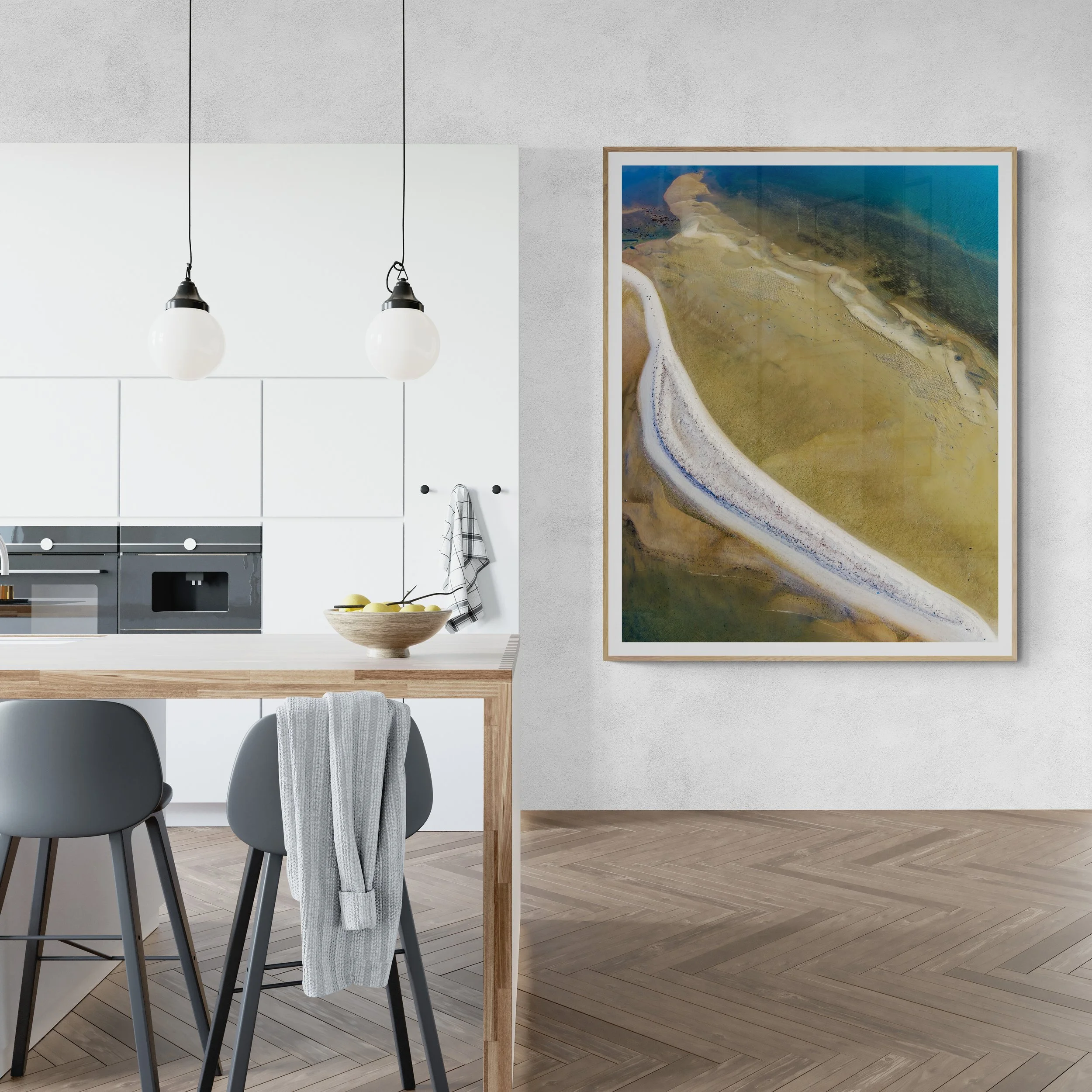 Aerial drone photography of a banana-shaped sand bar at Ponquogue Beach, Hampton Bays, NY USA 2025. The Banana Contact Me